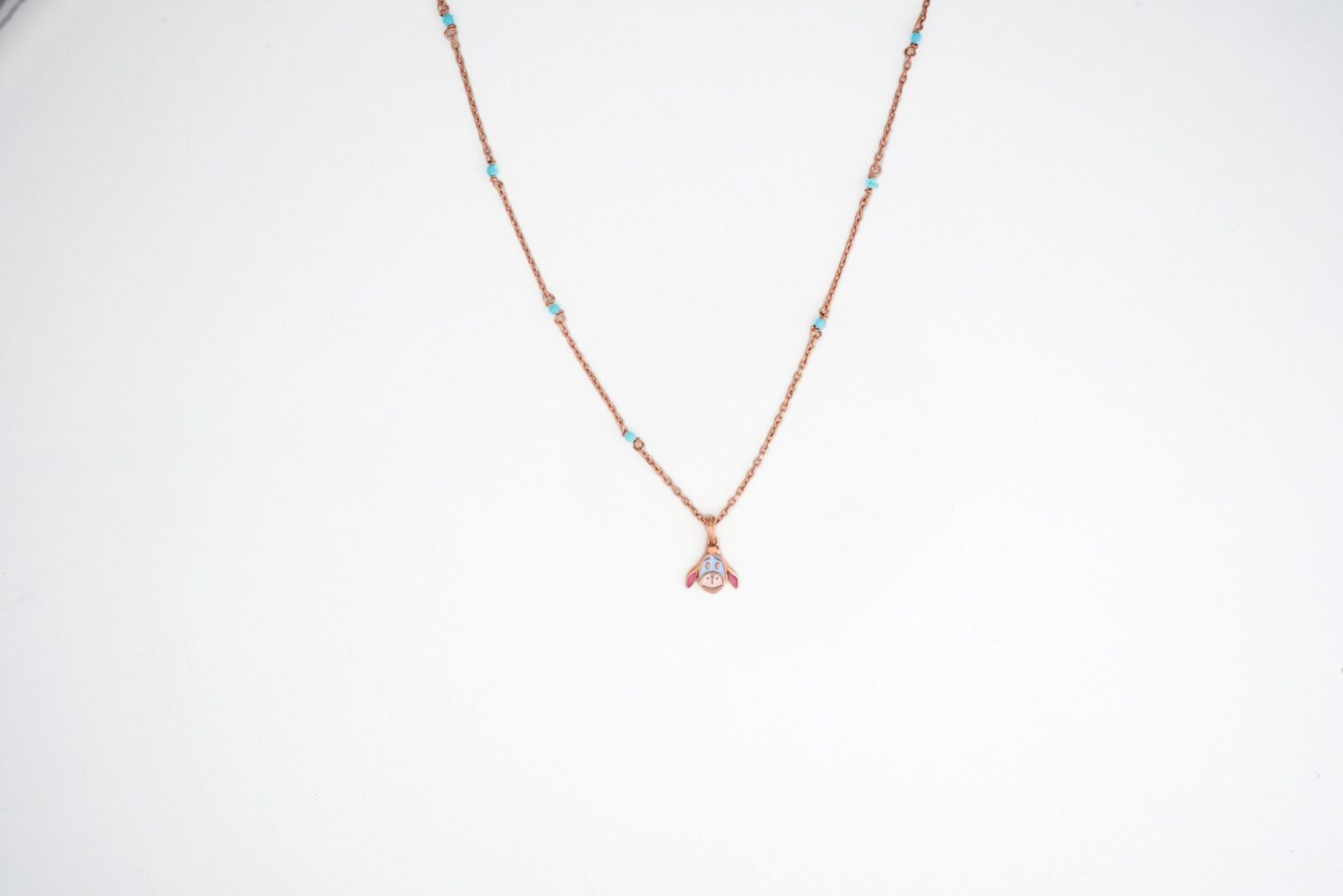 This is a stylish rose gold silver pendle chain featuring a minnie mouse shield design at the center.