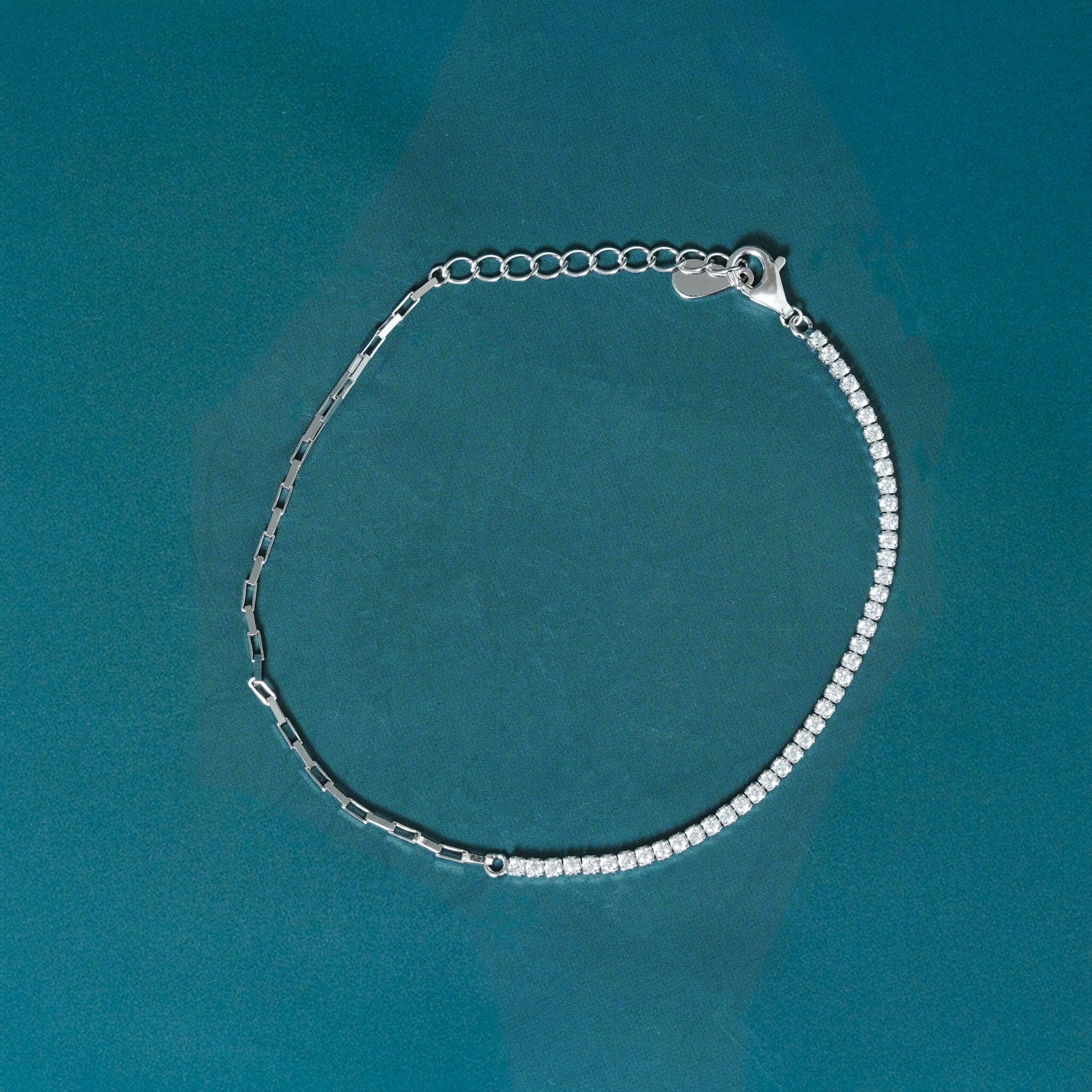 The Wamikaa 925 Silver Adjustable Tennis Bracelet is crafted to deliver timeless sparkle with modern comfort. Designed for effortless daily wear, this bracelet features a half-and-half tennis design with brilliant cubic zirconia stones paired with a sleek silver chain and extender for a perfect fit.