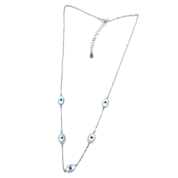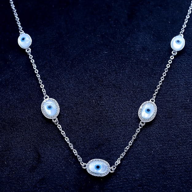 WAMIKAA Premium 92.5 Silver Evil-Eye Charms Pendant | Evil-Eye Charms-shaped Necklace with Pendant Embrace both style and protection with the WAMIKAA Premium 92.5 Silver Evil-Eye Charms Pendant, a stunning piece designed to bring elegance, luck, and positive energy into your life. Crafted from high-quality 92.5 sterling silver, this pendant features the iconic evil-eye charm, known for its centuries-old symbolism of protection against negative energy and envy. The pendant’s intricate design captures the mesmerizing allure of the evil eye, with vibrant detailing that enhances its charm and beauty. Perfect for those who believe in the power of good vibes, this pendant not only adds a unique and fashionable touch to any outfit, but also serves as a meaningful amulet for warding off bad luck and attracting positivity. The pendant comes with a matching adjustable sterling silver chain, allowing for versatility in styling. Whether worn as an everyday accessory or as a statement piece for a special occasion, this pendant is sure to catch the eye and elevate your look with its striking beauty. Key Features: Material: Made from high-quality 92.5 sterling silver for a durable and polished finish Symbol of Protection: The evil-eye charm is believed to protect the wearer from negative energy and bad luck Meaningful Design: Features intricate detailing that enhances the beauty and power of the evil-eye symbol Versatile Style: Perfect for everyday wear or for adding a bold statement to formal or casual outfits Adjustable Chain: Comes with a matching sterling silver chain, adjustable for a customized fit Ideal Gift: A thoughtful and meaningful gift for girls and women, perfect for birthdays, celebrations, or as a protective talisman Infuse your jewelry collection with both style and positive energy with the WAMIKAA Premium 92.5 Silver Evil-Eye Charms Pendant – a timeless accessory that combines ancient symbolism with modern elegance.